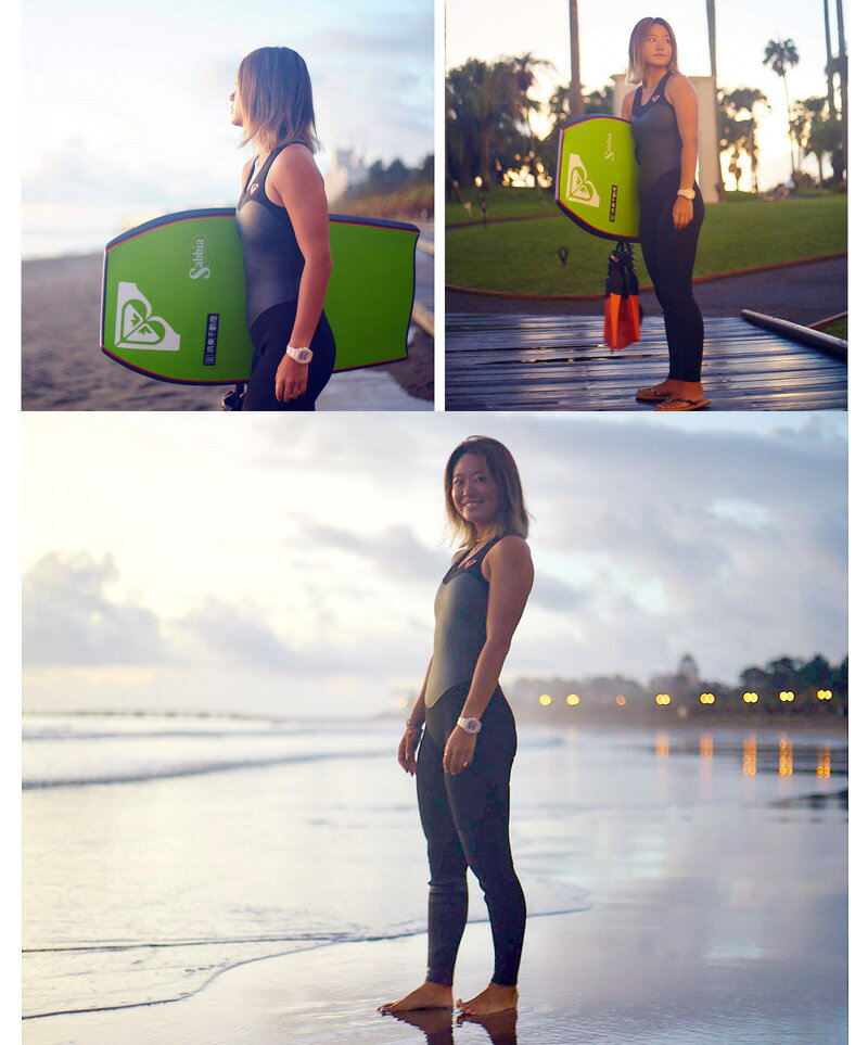袖が無いので肩も回しやすく、素材も超軽量伸縮ジャージを使用し、日本の水温を考慮した2mm厚&GBS縫製(すくい縫い)仕様の設計で、サーフィンはもちろんSUPにも最適。
