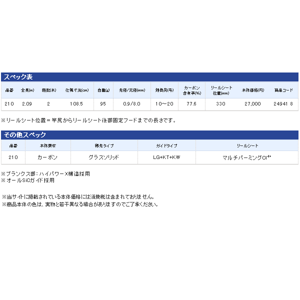 ■ネジレに強い強化構造ハイパワーX採用 ■グラスソリッド穂先 ■軽量&高感度なマルチパーミングCI4+シート ■オールSiCガイド ■軽量で操作性に優れた形状のEVAグリップ ■携帯性に優れたセンターカット2ピース ☆
